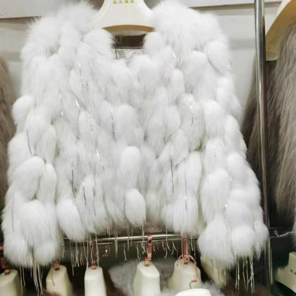 Модная и популярная шуба из натурального лисьего меха для женщин, короткий стиль, осень и зима, меховая полоска с кисточками, топ с круглым вырезом one size