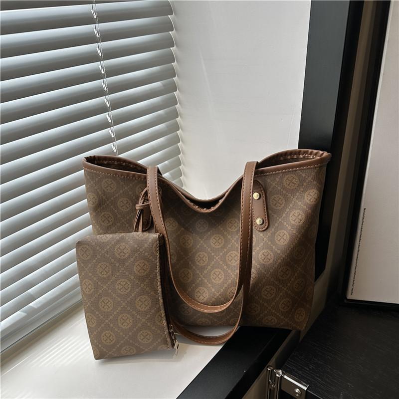 Модная ретро сумка для мамы и ребенка в европейском и американском стиле, большая вместительная сумка-тоут с принтом букв, портативная наплечная сумка, женская сумка коричневый
