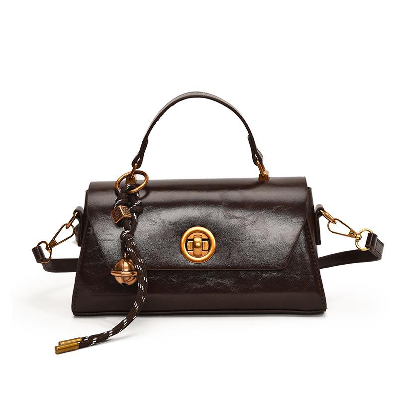 Модная ретро-сумка 2024 года: Женская повседневная сумка кроссбоди, простая ручная, на одно плечо, маленькая квадратная сумка для осени/зимы No Pendant кофейный