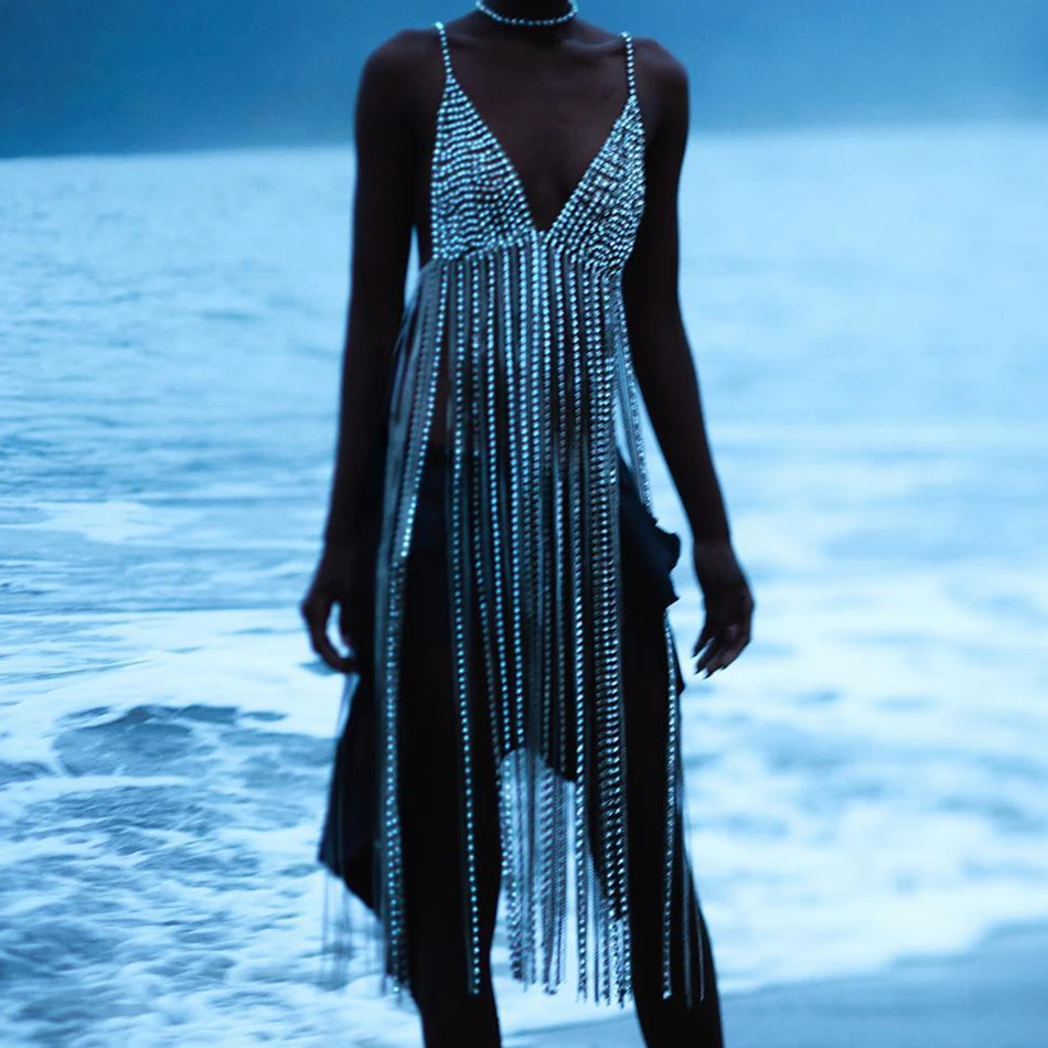 Модная роскошная женская сексуальная Длинная цепочка с кисточками Изысканная цепочка Стразы с кристаллами ювелирные изделия ожерелье для вечевечерние НКИ выпускного вечера подарочные украшения