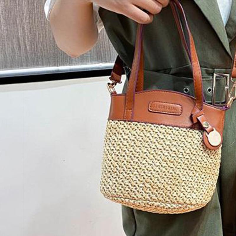 Модная соломенная тканая сумка, повседневная женская сумка через плечо, портативная сумка-ведро
