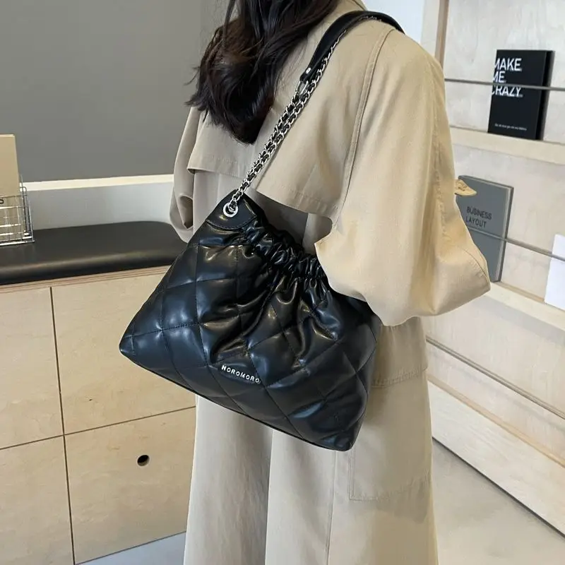 Модная стеганая большая сумка с бриллиантами, женская однотонная кожаная сумка с цепочкой, большая вместительная сумка на плечо, женская роскошная сумка премиум-класса для подмышек