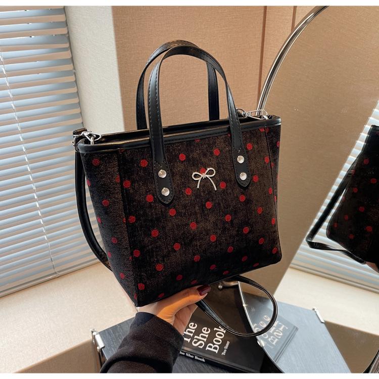 Модная сумка-ведро с бантом 2024 года, ранняя осень, новая универсальная сумка через плечо в горошек, большая вместимость, женская сумка чёрный