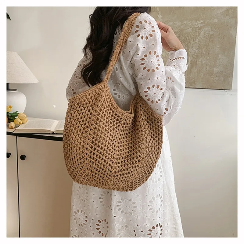 Модная сумка на плечо, женские летние пляжные сумки, полые соломенные тканые сумки, женские сумки на плечо, большая вместительная сумка для покупок ручной работы