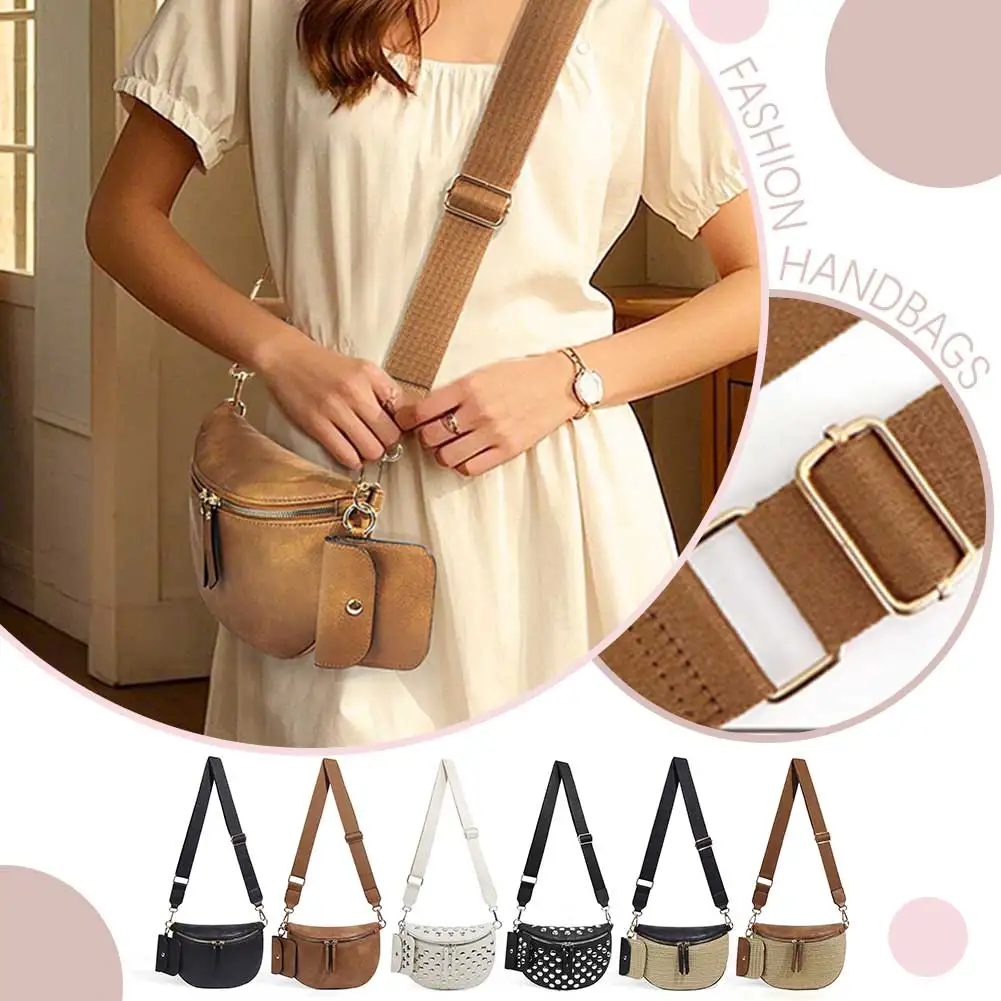 Модная сумка через плечо из искусственной кожи, большая вместительная стильная соломенная нагрудная сумка с регулируемым ремешком, универсальная сумка на ремне, сумка для работы, свидания, вечеринки