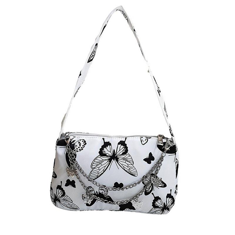 Модная сумка через плечо на молнии, мини-модная сумка под мышками с узором бабочки, маленькая стильная сумка с цепочкой и декором чёрный/белый