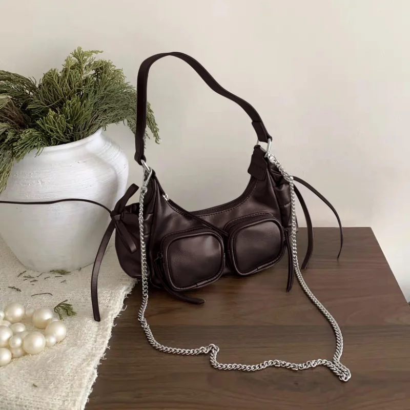 Модная сумка через плечо Y2k в стиле ретро, крутая мотоциклетная сумка для горячей девушки, большая вместительная сумка-мессенджер с цепочкой, трендовая уличная сумка-тоут под мышками