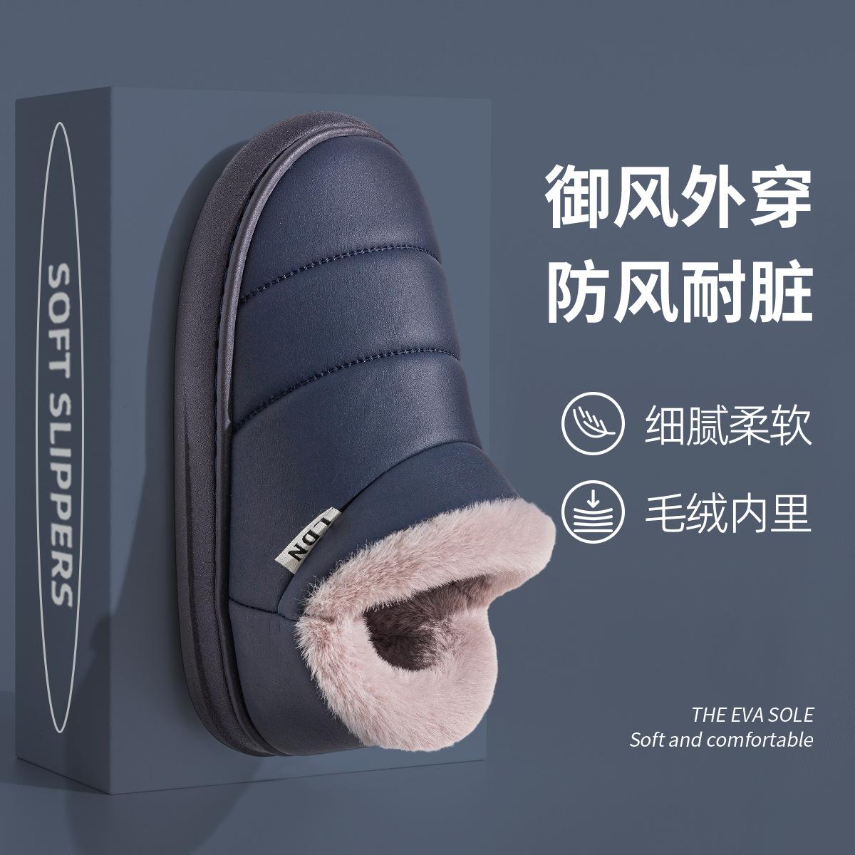 Модная теплая хлопковая обувь осень и зима 2024 года, новая удобная мужская обувь для дома, толстая подошва, нескользящие водонепроницаемые хлопковые ботинки 45 темно-синий