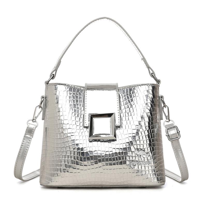 Модная и трендовая сумка-ведро Высококачественная сумка через плечо большой вместимости Сумка кросс-боди Сумка-тоут серебряный