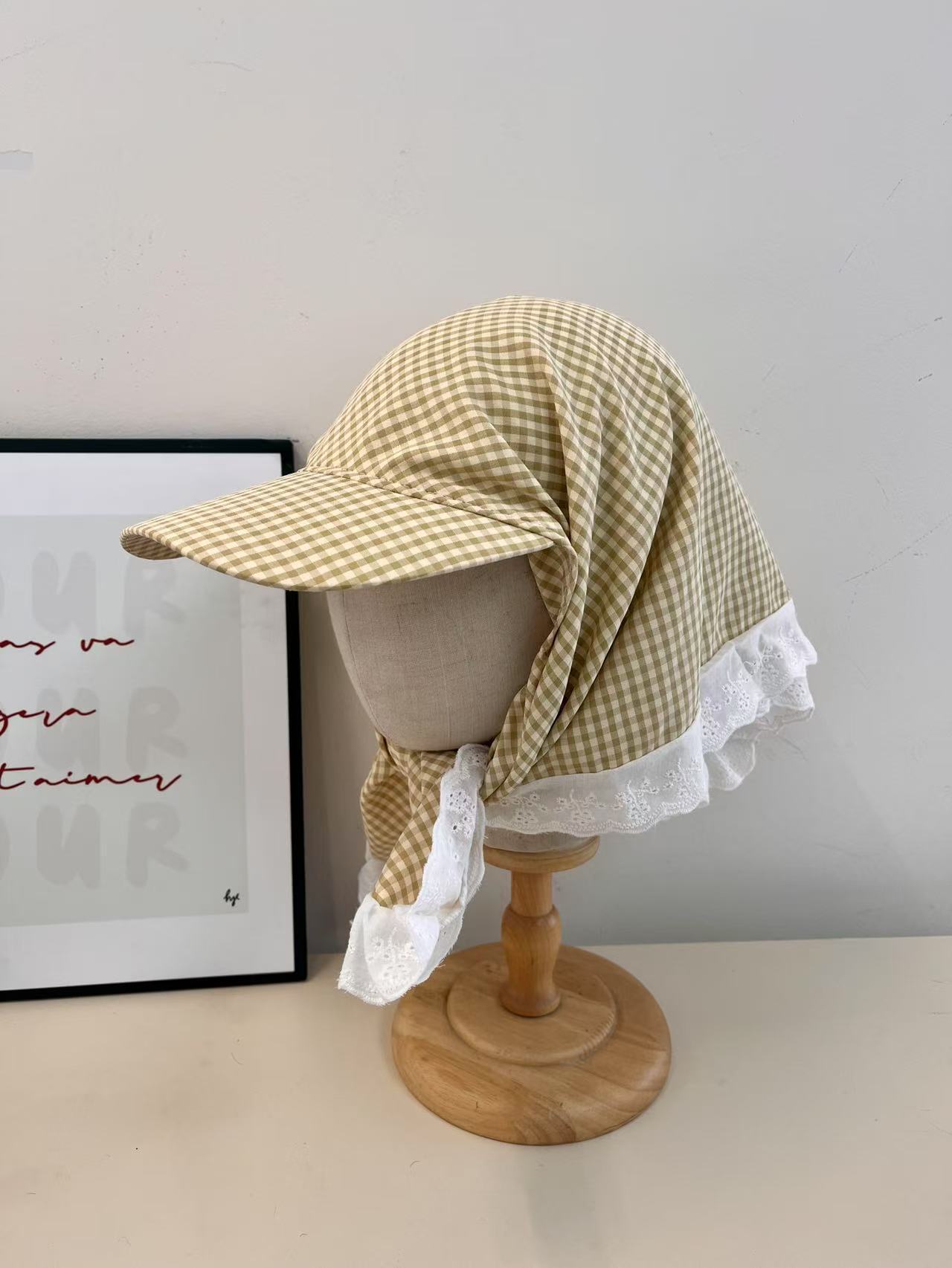 Модная универсальная клетчатая маленькая свежая шапка-платок женская летняя солнцезащитная козырек универсальная фото шапка M(56-58cm) жёлтый