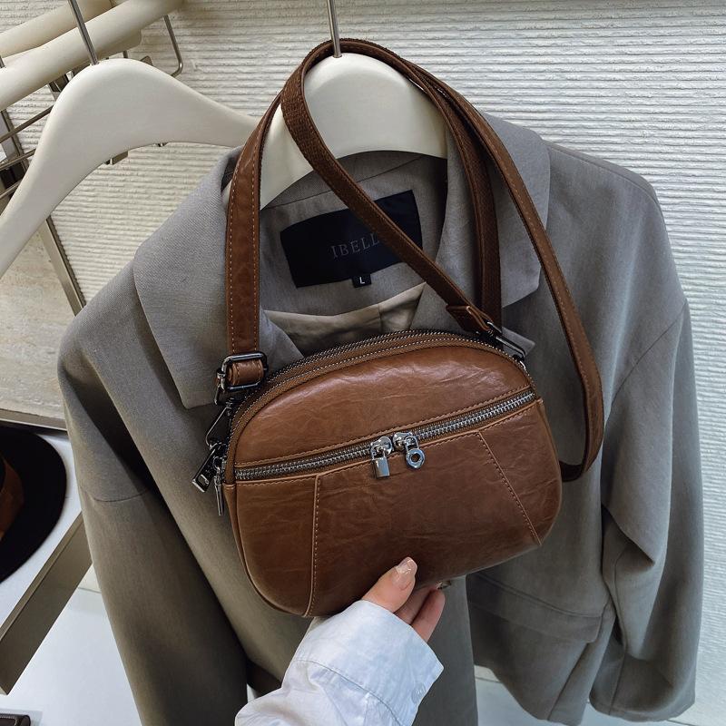 Модная универсальная маленькая наплечная сумка с высоким чувством стиля, женская новая универсальная многосекционная сумка-мессенджер, маленькая круглая сумка коричневый