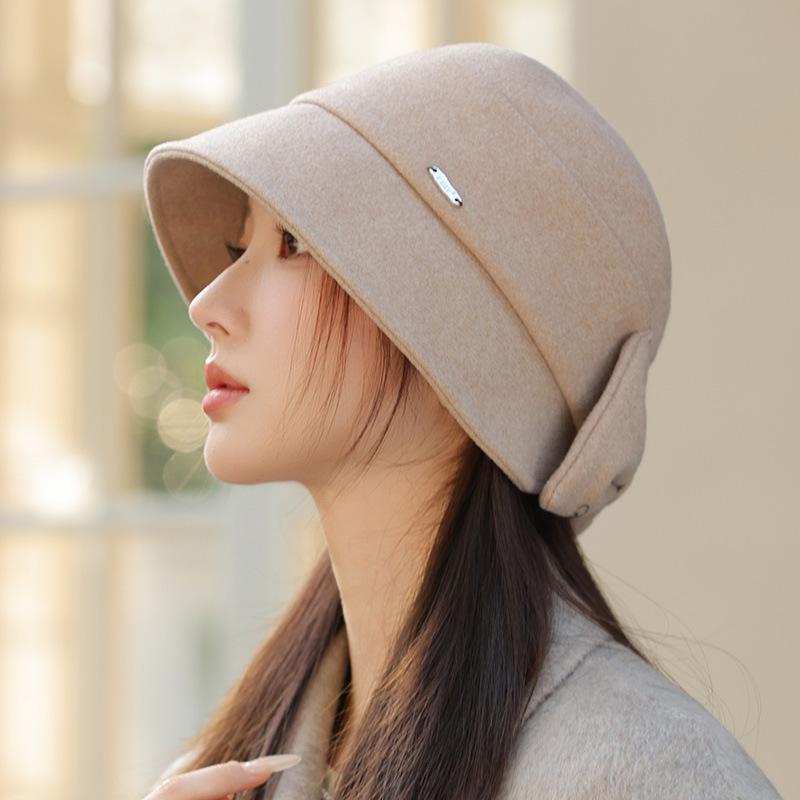 Модная и универсальная шляпа-панама в корейском стиле с бантом, новая ветрозащитная и теплая шляпа для женщин на весну и осень, повседневная шляпа-ведерко, подчеркивающая лицо average size