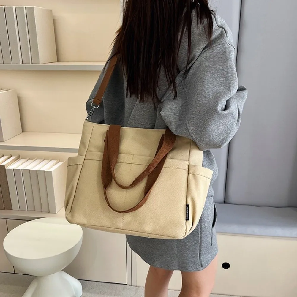 Модная утолщенная холщовая сумка на молнии с несколькими карманами, большая вместительная сумка на одно плечо, женская сумка для хранения в японском стиле