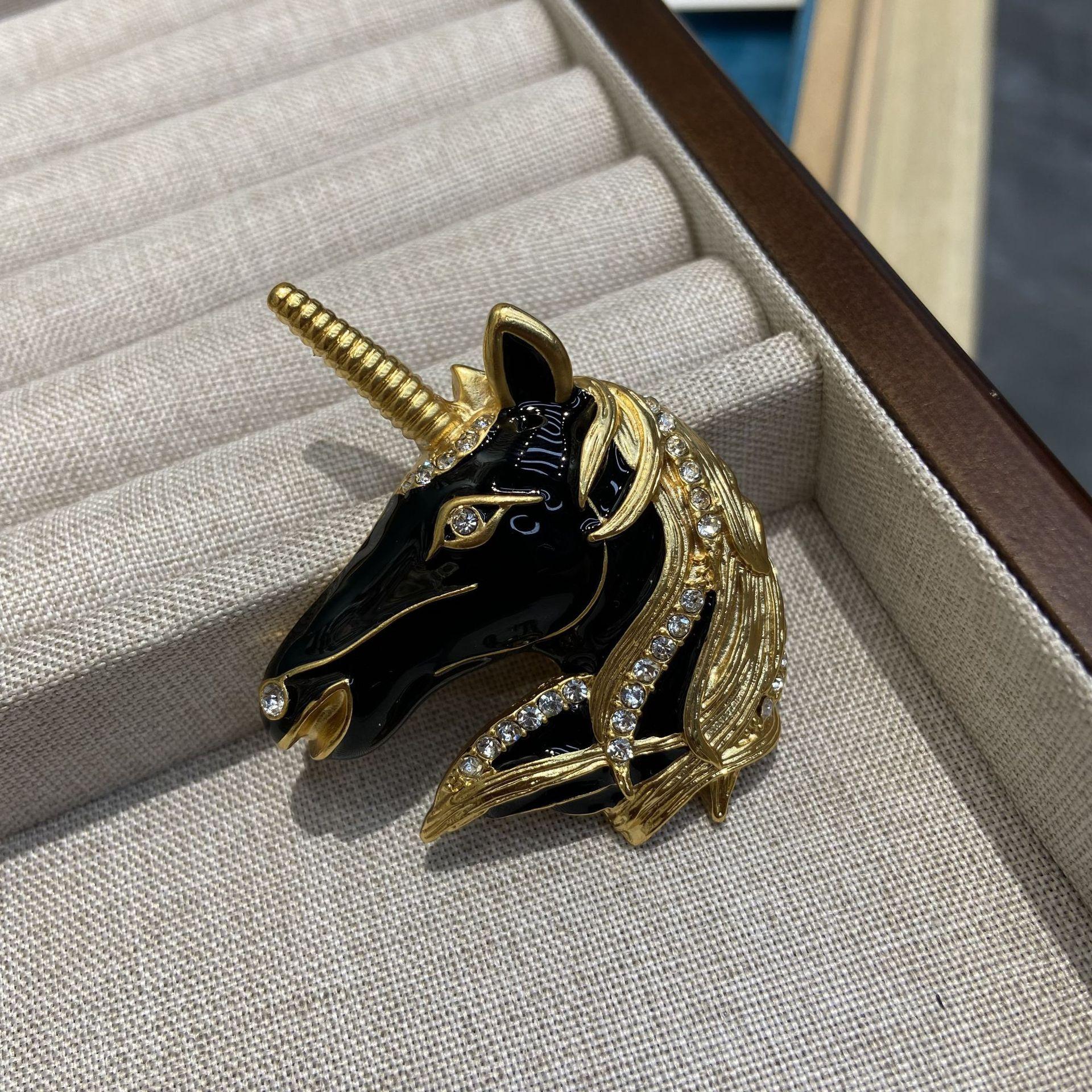 Модная черная средневековая брошь в виде головы лошади из меди и золота, высококачественная, с капающим маслом, в виде единорога