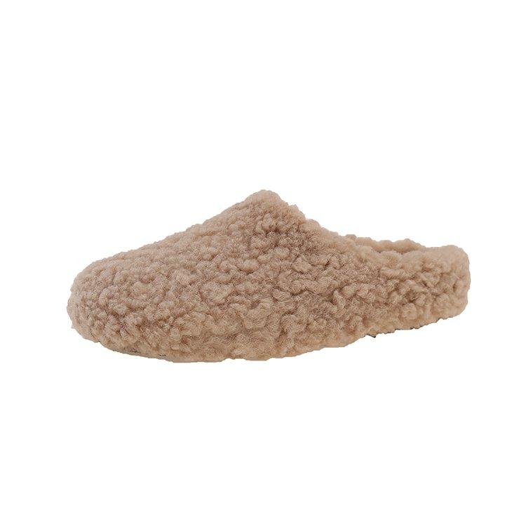 Модная шерстяная обувь женская платформа подошва однофутовые слипоны баотоу полушлепанцы 2025 осень бархат хлопок швабра 40