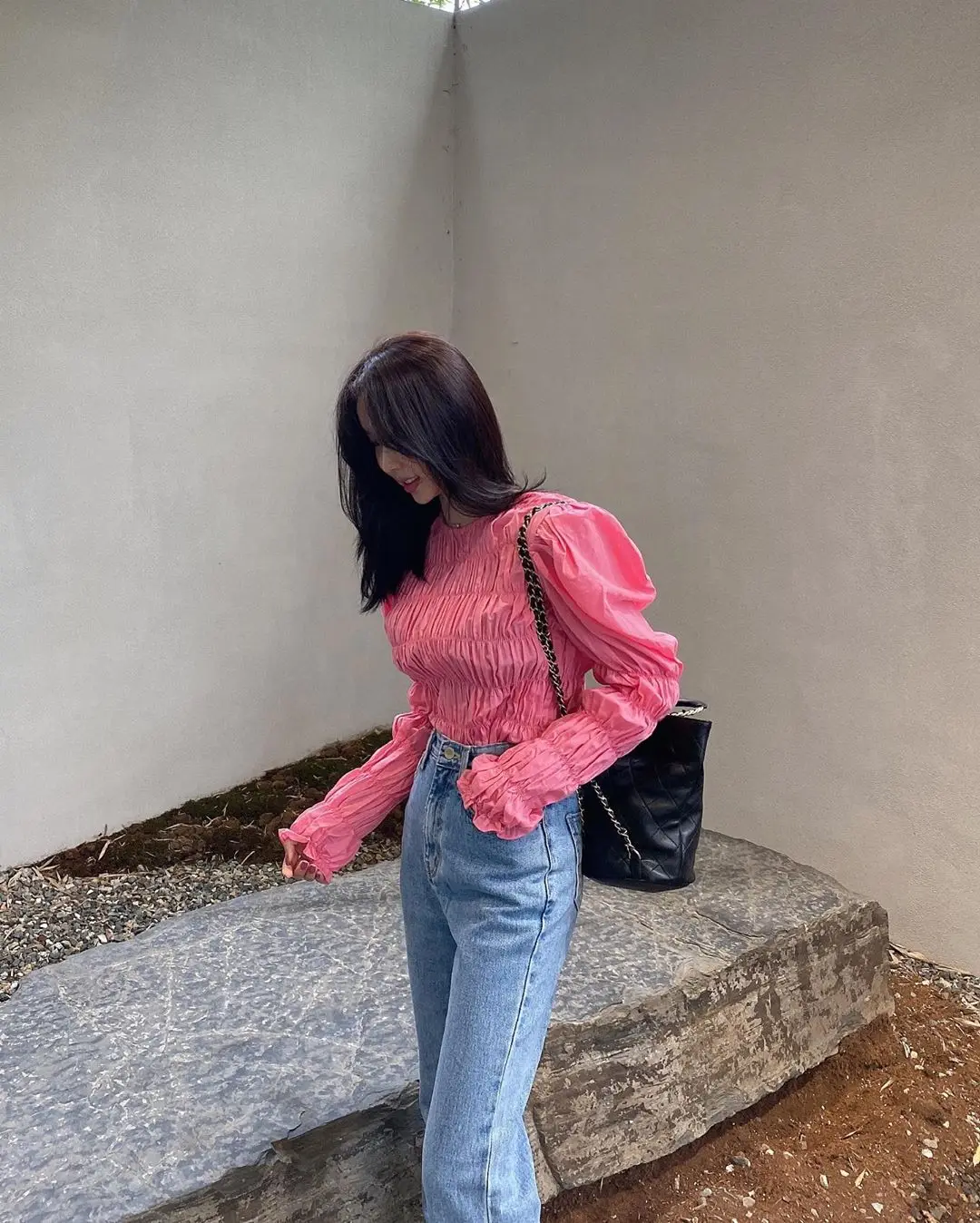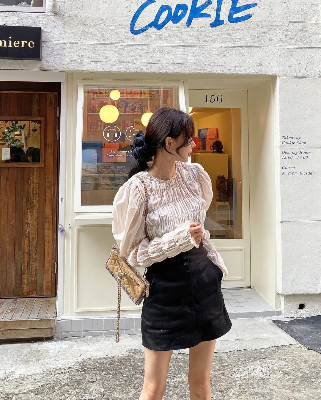 Модная эластичная плиссированная рубашка с круглым вырезом, однотонный топ в стиле ретро, блузы с пышными рукавами, нижнее белье, Весенняя б...