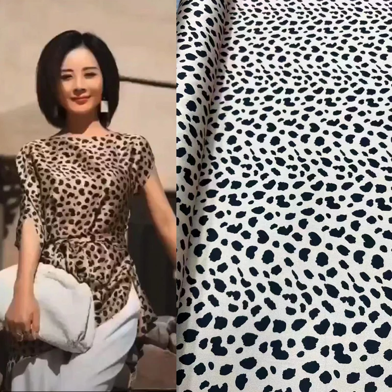 Модная эластичная саржевая шелковая ткань цвета хаки с черным леопардовым принтом, Классическая легкая Роскошная летняя мягкая одежда, тка...