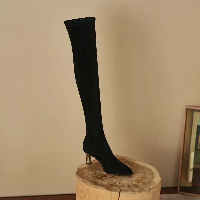 Модная элегантная зимняя обувь Lenkisen в стиле ins, высокие сапоги до бедра из эластичной ткани на молнии, лаконичные модельные Сапоги выше коле...