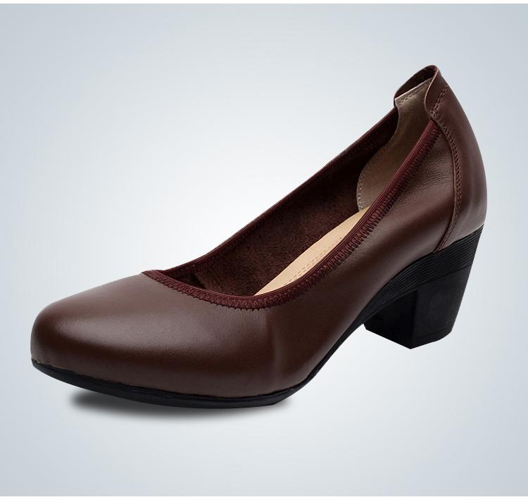 Модная GKTINOO 2025 Кожаная OL Женская Обувь Толстый Средний Каблук Леди Офисная Рабочая Обувь Весна Осень Мелкие Туфли-Лодочки Большой Размер 33-43 12 коричневый