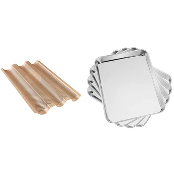 1 Set Nonstick Bakeware Rectangular Baking Pan Cookie Sheets Roasting Pan & 1 Pcs Baguette Pan Set 3 Slots Baguette Mold