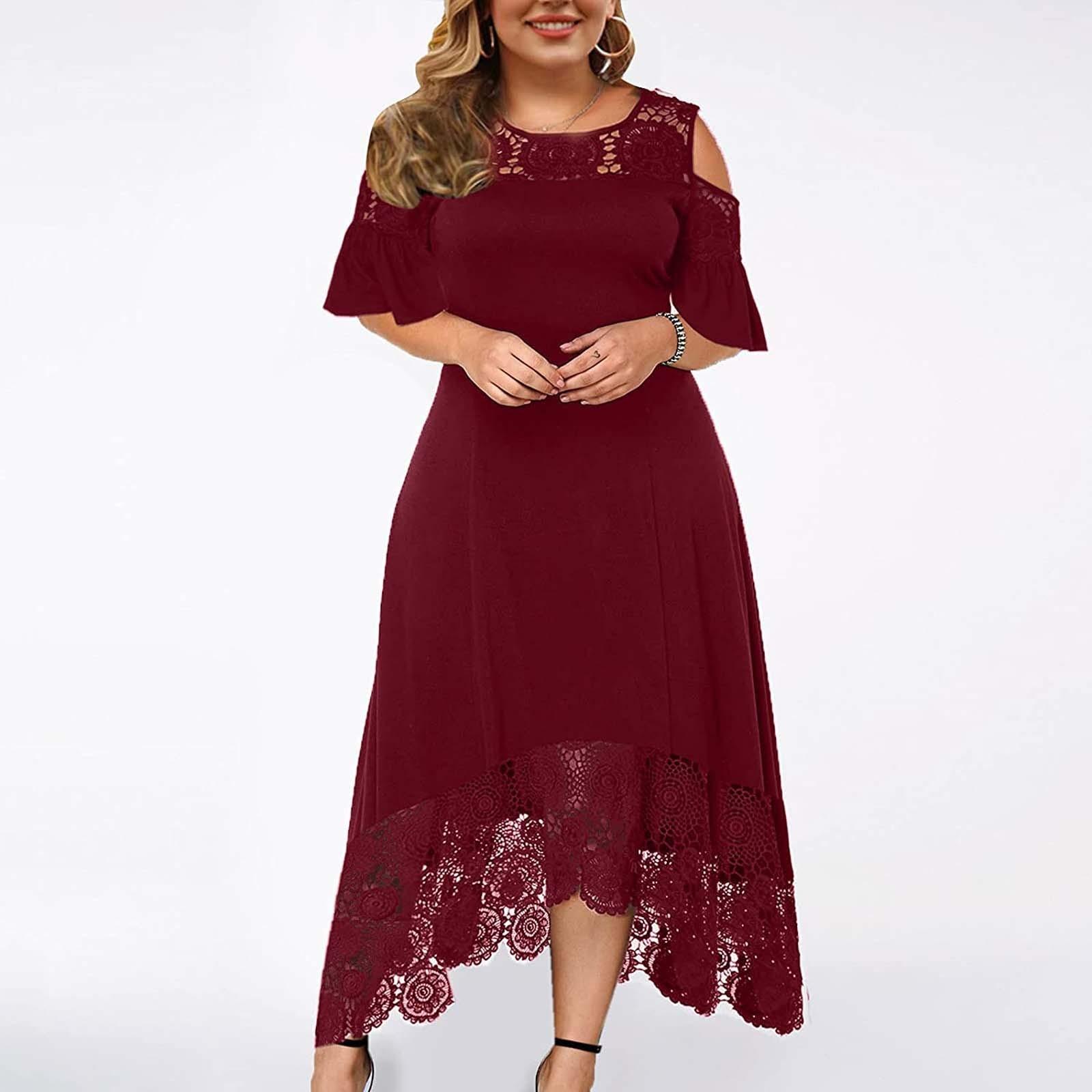 Модное женское кружевное платье без бретелек с короткими рукавами и рюшами XL красный
