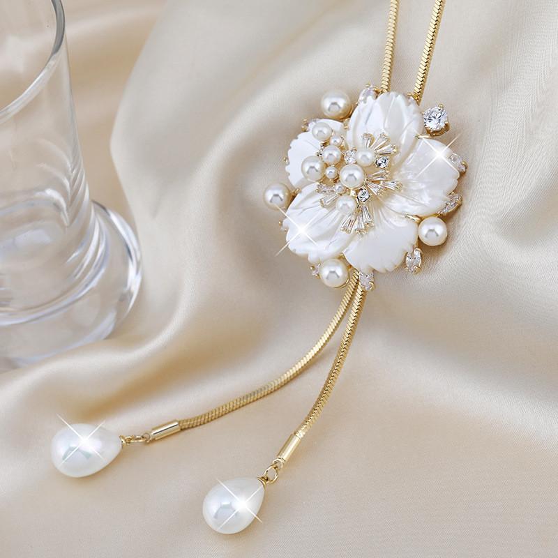 Модное женское ожерелье с кисточкой в цветочном стиле с деталями из натуральной ракушки и жемчуга