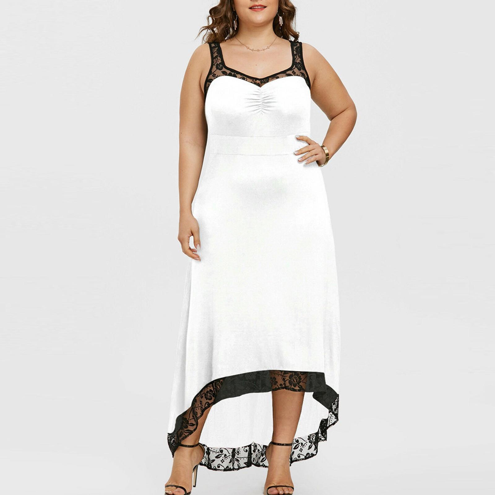 Модное женское повседневное кружевное однотонное вечернее платье без рукавов больших размеров XL белый
