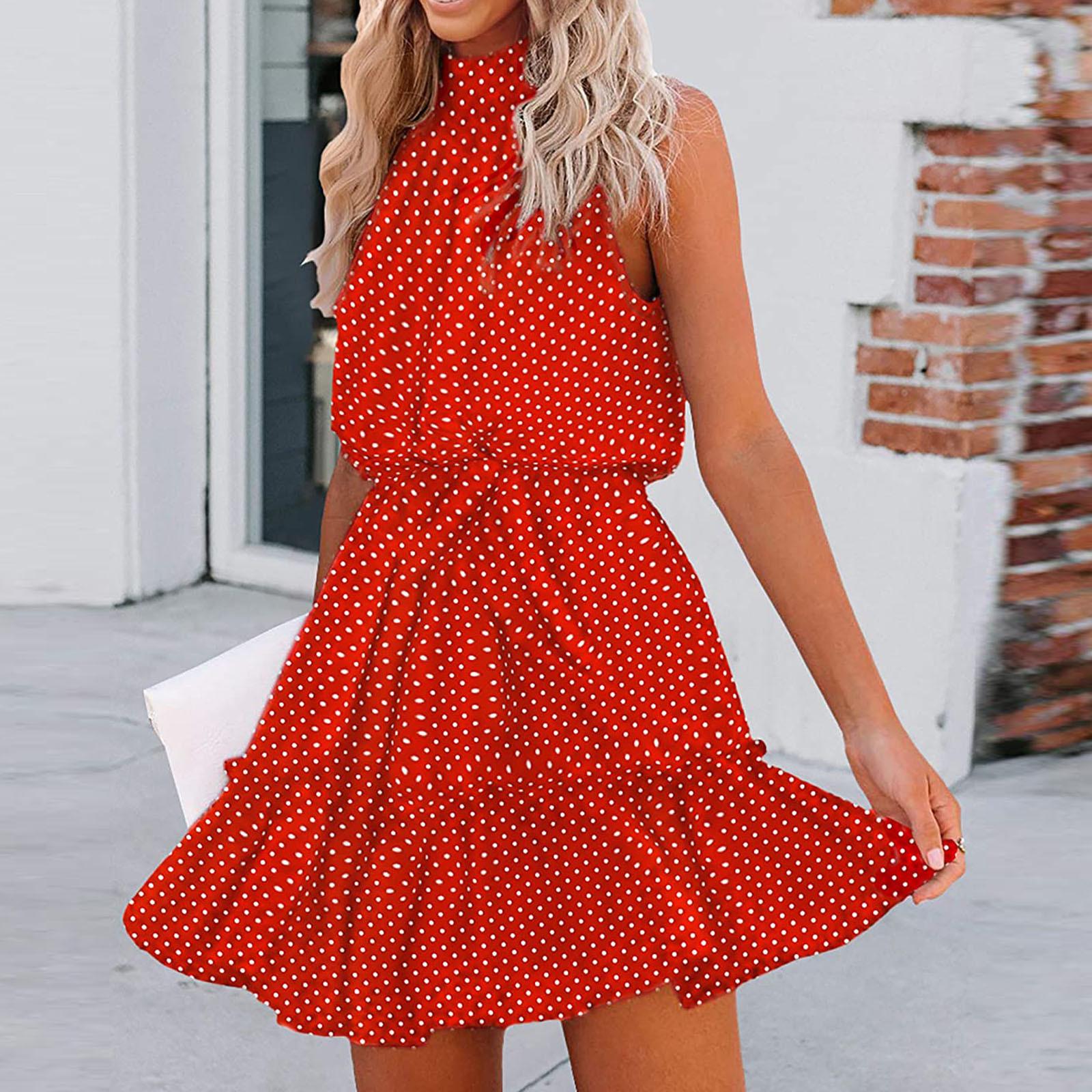 Модное женское повседневное платье без бретелек с цветочным принтом и рюшами S красный