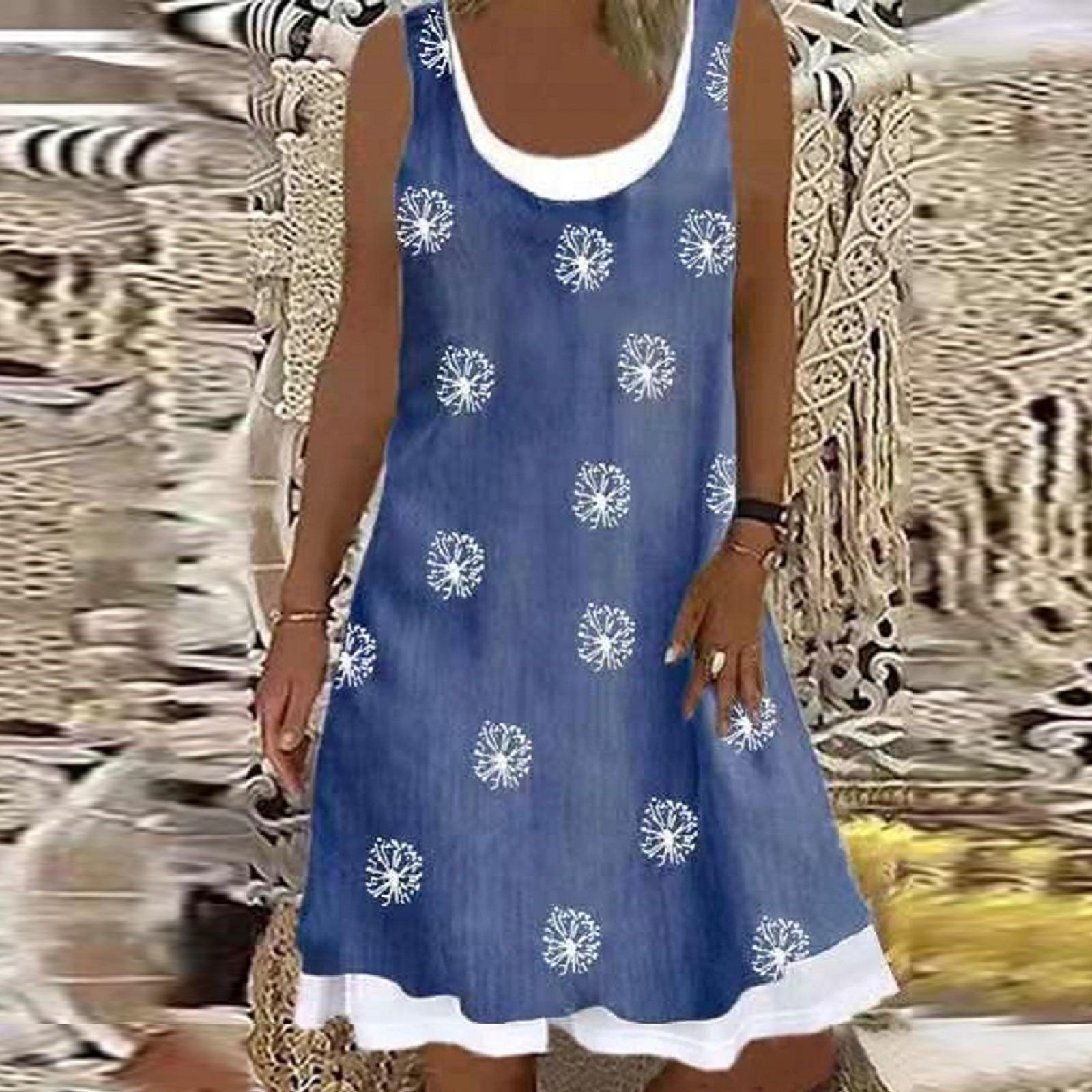 Модное женское свободное повседневное платье без рукавов с фальшивым воротником и круглым вырезом XXXL
