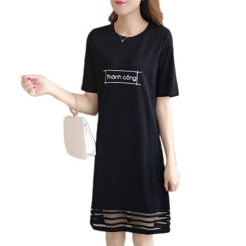 Модное женское тонкое прямое платье с коротким рукавом, сексуальные летние платья больших размеров M чёрный