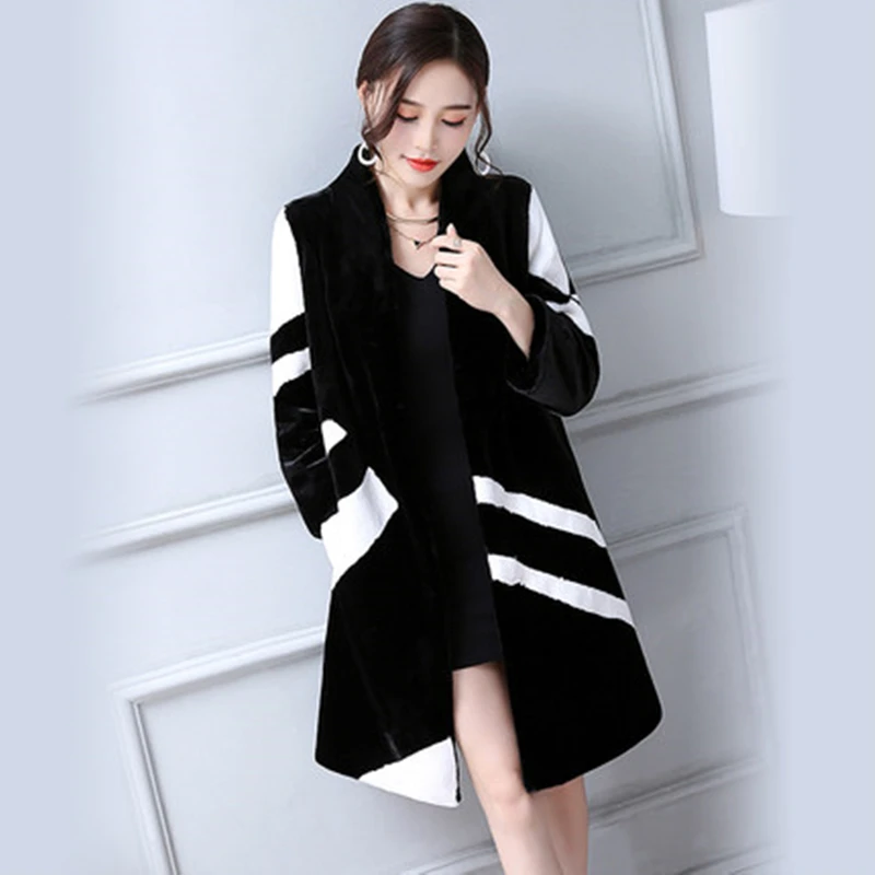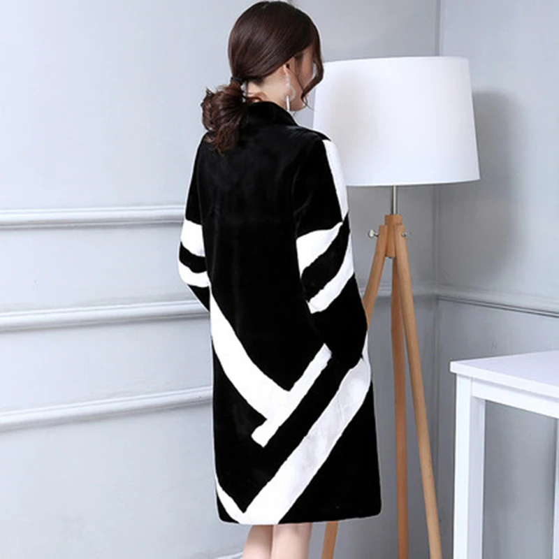 Модное качественное женское превосходное длинное кашемировое пальто в стиле пэчворк, в полоску, с v-образным вырезом, пальто размера плюс, с...