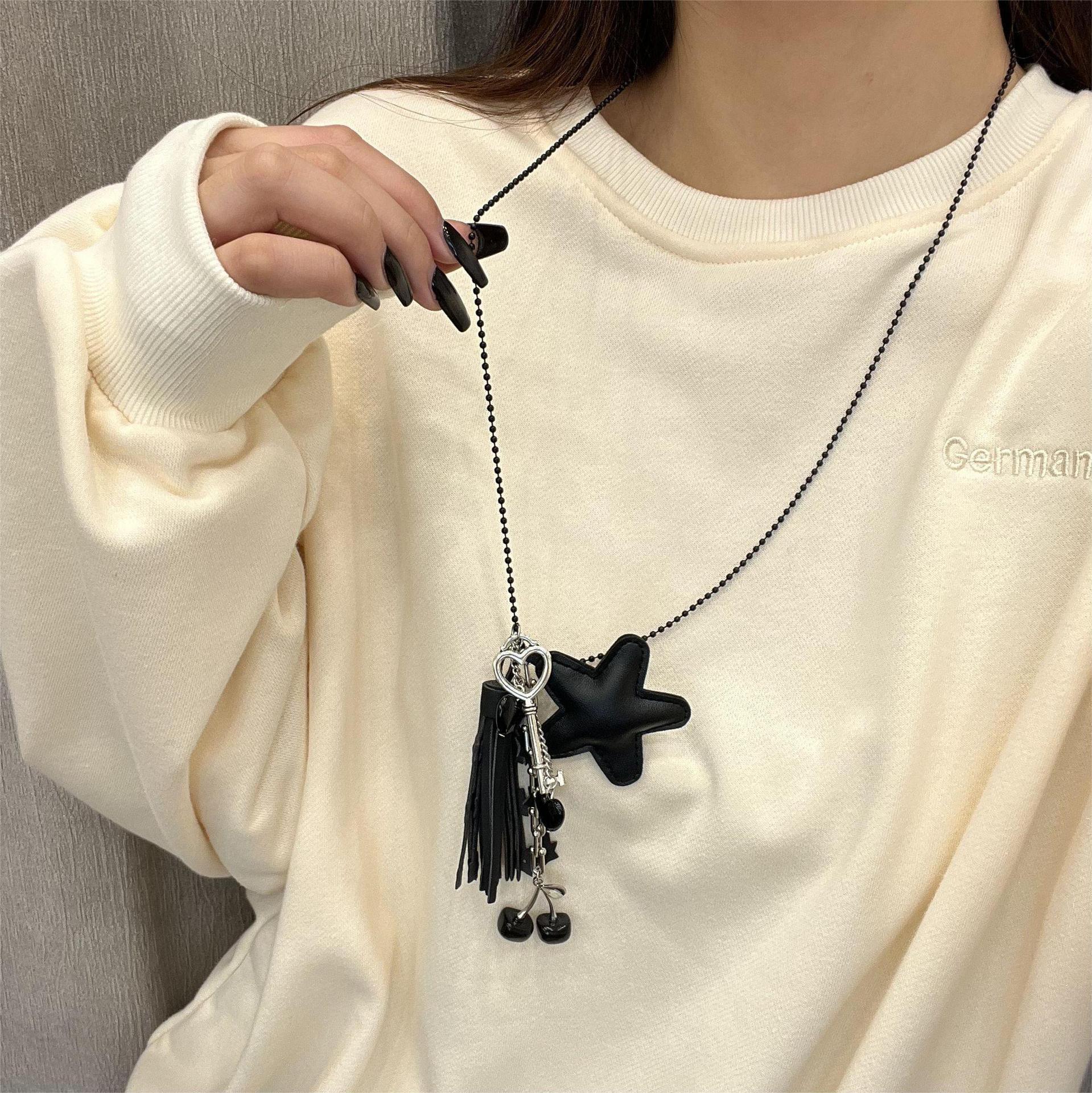 Модное кожаное ожерелье с кисточками для женщин - модная осенне-зимняя цепочка для свитера