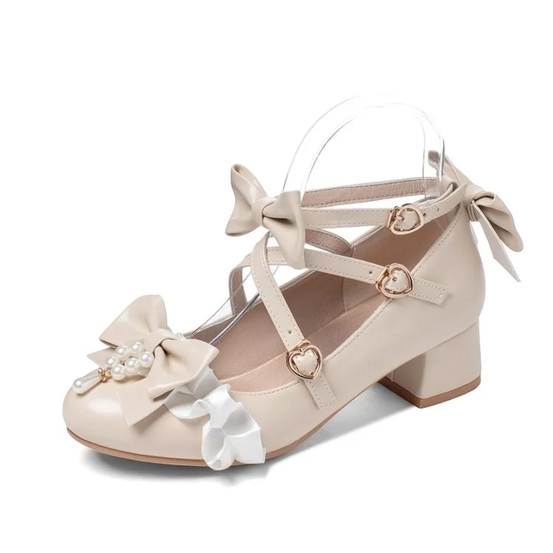 Spring and Autumn Woman Pumps Shoes Brand New Pearl Party Design Sweet Lolita Style Butterfly-knot Mixed Colors Big Size 28-48