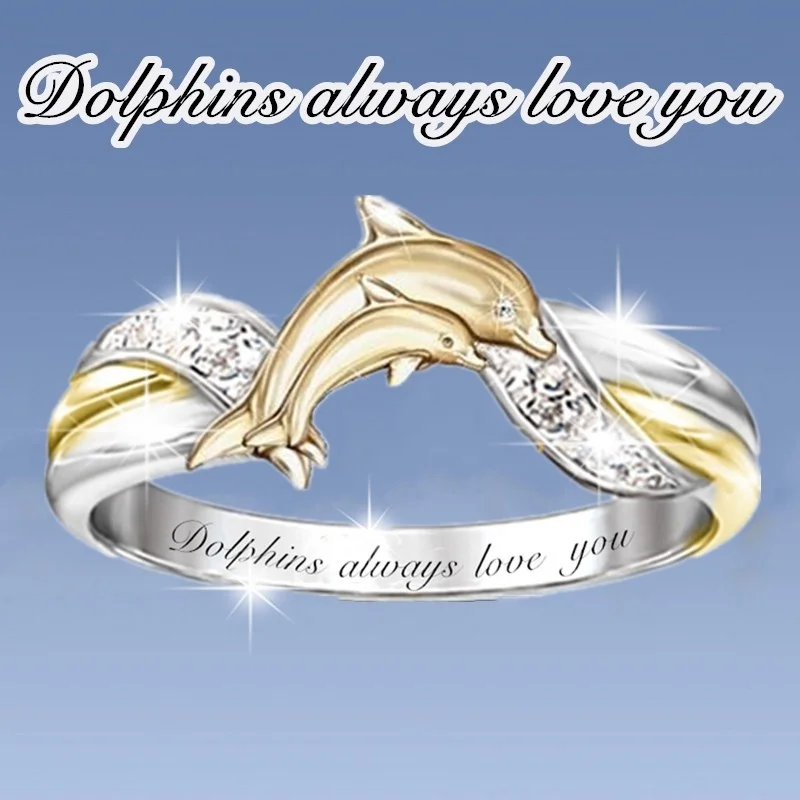 Модное очаровательное Ювелирное кольцо, Золотое кольцо с дельфином и камнем, Золотое и серебряное двухцветное женское кольцо, обручальное ...