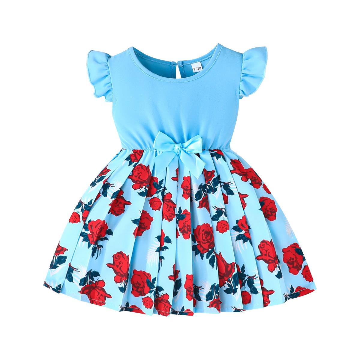 Модное платье для девочек с круглым вырезом, летнее детское милое и красивое платье с узором в виде розы 6-9M