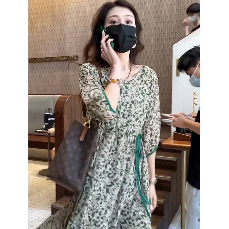 Модное платье с принтом Женское летнее Новое Уменьшающее возраст Темперамент Знаменитость Стройнящее платье XL
