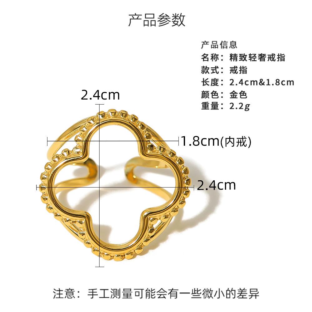 Модное позолоченное открытое кольцо из нержавеющей стали, женский дизайн с четырьмя листами клевера, кольцо для указательного пальца, титановая сталь не выцветает Opening adjustable
