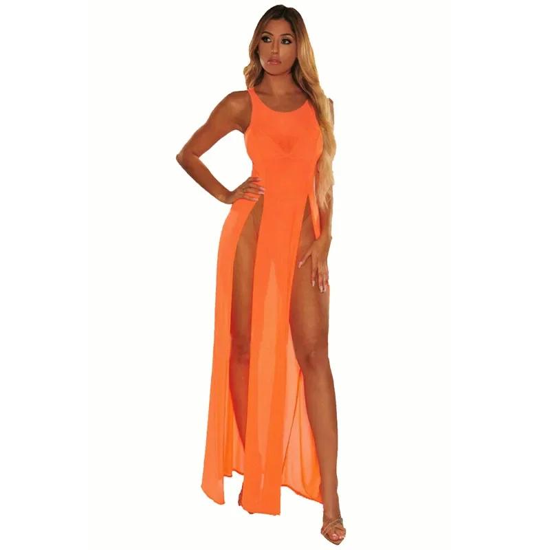 Модное прозрачное сексуальное длинное спальное платье с разрезом, супер эластичное многоцветное сетчатое пляжное платье, женская ночная рубашка, нижнее белье, платье XXL