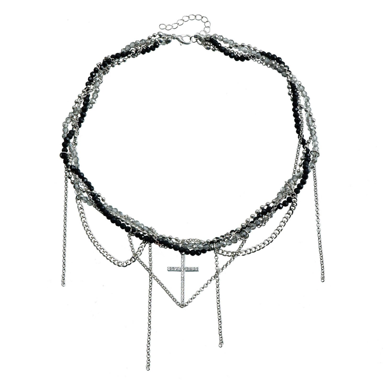 Модное прочное ожерелье из стеклянных кристаллов с крестами, стильными стразами на элегантной цепочке-змейке T1