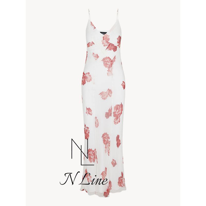 Модное прямое платье-комбинация из шелка с принтом роз Realisationpar, милое праздничное платье White S