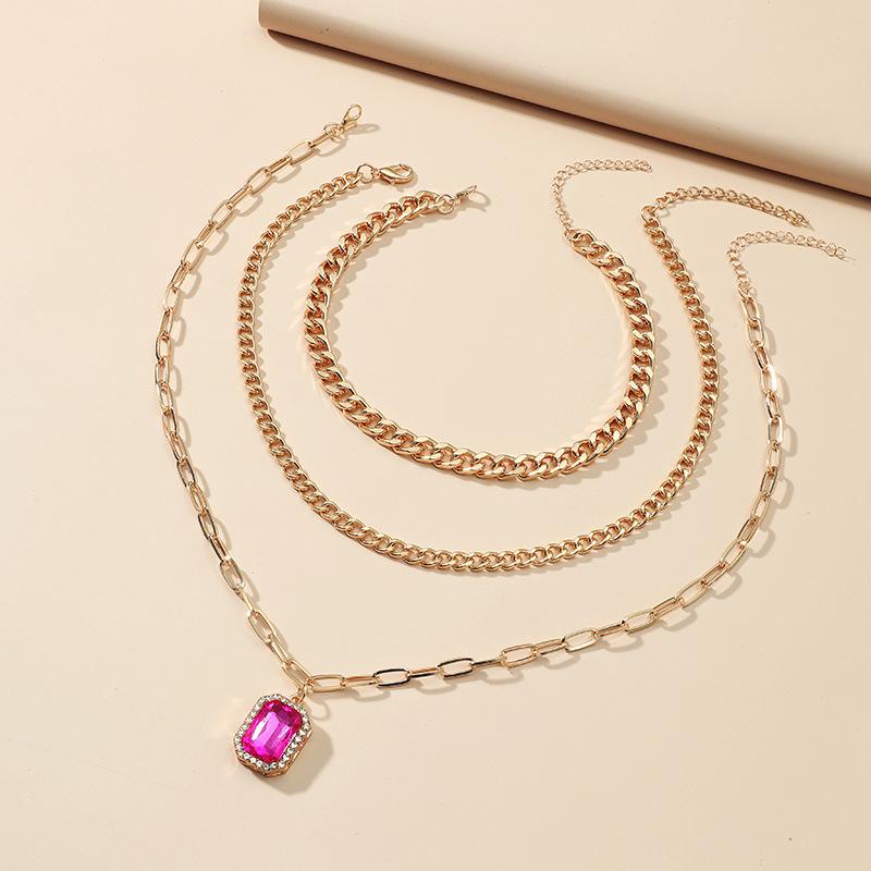 Модное темпераментное многослойное ожерелье с бриллиантами, простое ювелирное украшение, квадратная подвеска, ожерелье из трех частей