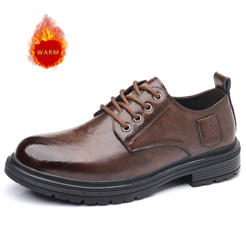 Модные Классические Коричневые Оксфорды на Толстой Подошве Мужские Кожаные Повседневные Туфли на Шнуровке с Низким Вырезом Ретро Новые Рабочие Туфли Зимний Вельвет 44