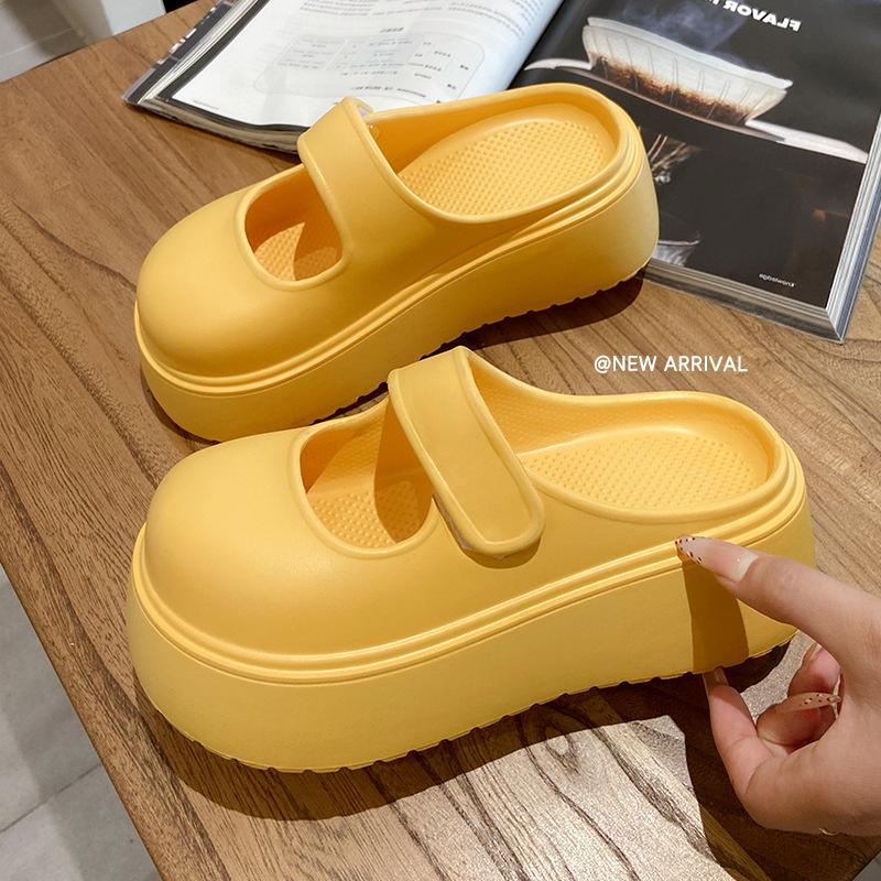 Модные Новые Женские Домашние Уличные Тапочки Лето Осень Обувь на Платформе Мягкая ЭВА Закрытый Носок Противоскользящие Женские Повседневные Сандалии для Ходьбы 35-36 жёлтый