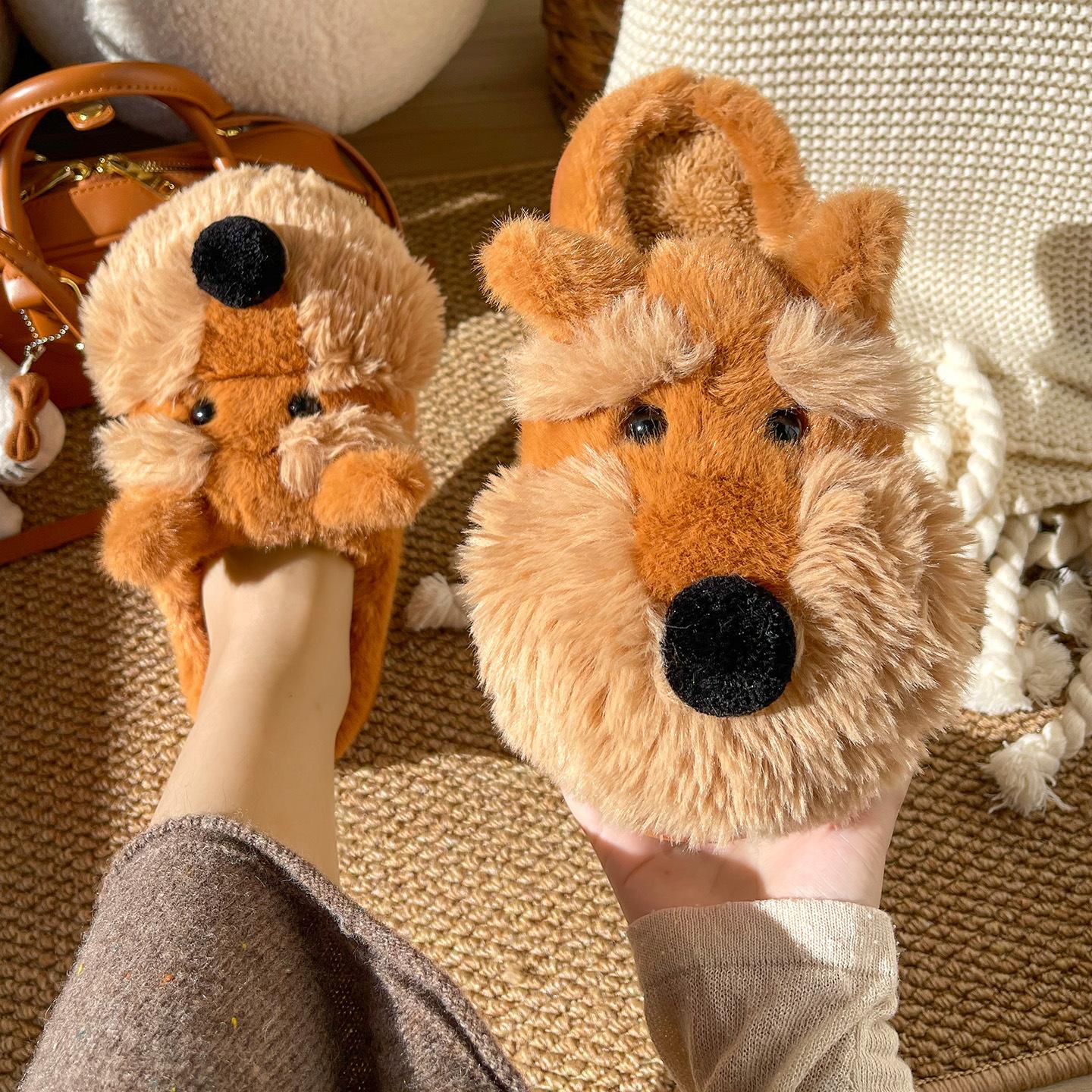 Модные Новые Милые Мультяшные Пушистые Тапочки Женские Зимние Плюшевые Туфли Забавный Стиль Собаки Теплый Искусственный Мех Противоскользящие Девочки Домашние Хлопковые Шлепанцы 36-37 светло-коричневого