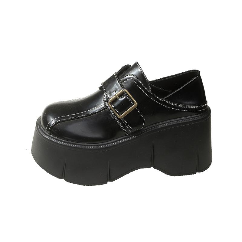 Модные Новые Туфли Лолита Женские Туфли Ремешок с Пряжкой Высота Каблука 8 СМ Туфли на Платформе Женские Готические Ботильоны Рок Женские Туфли из Лакированной Кожи 34 чёрный