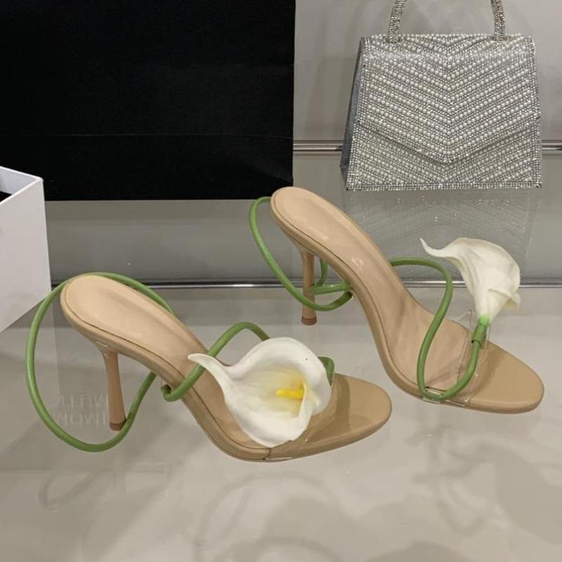 Модные Сексуальные ПВХ Прозрачные Цветочные Узкие Ремешки Женские Сандалии Уличный Стиль Открытый Носок Тонкий Высокий Каблук Вечеринка Выпускной Обувь Zapatos De Mujer 35 зелёный