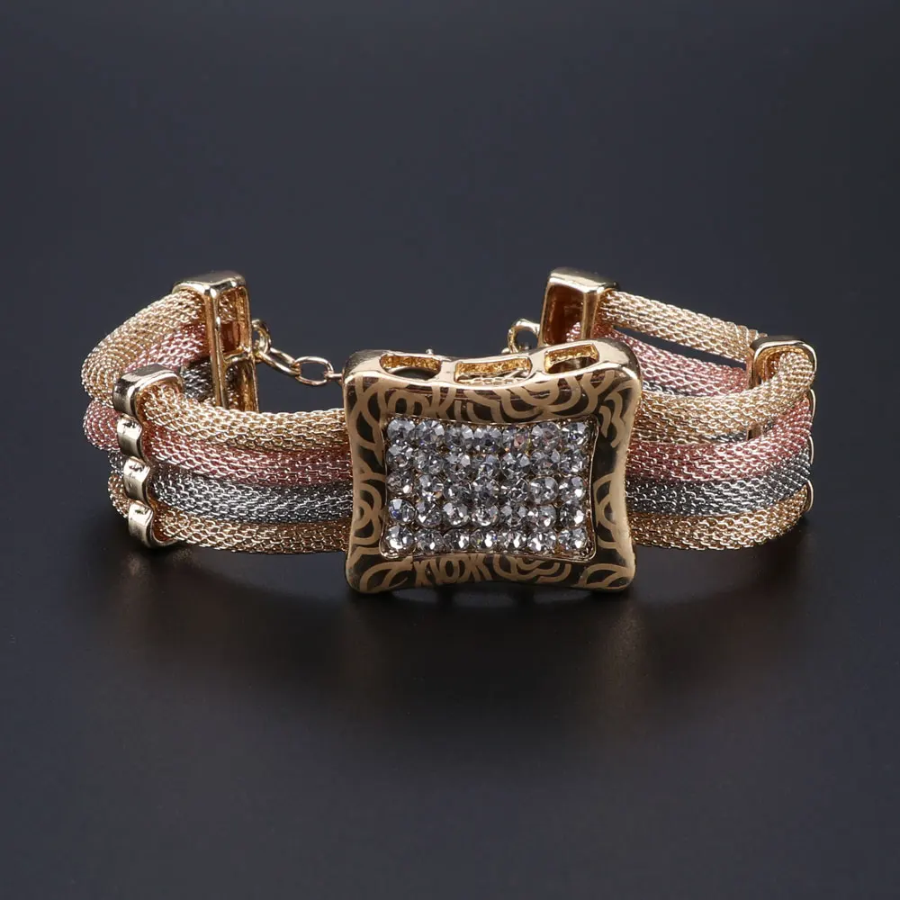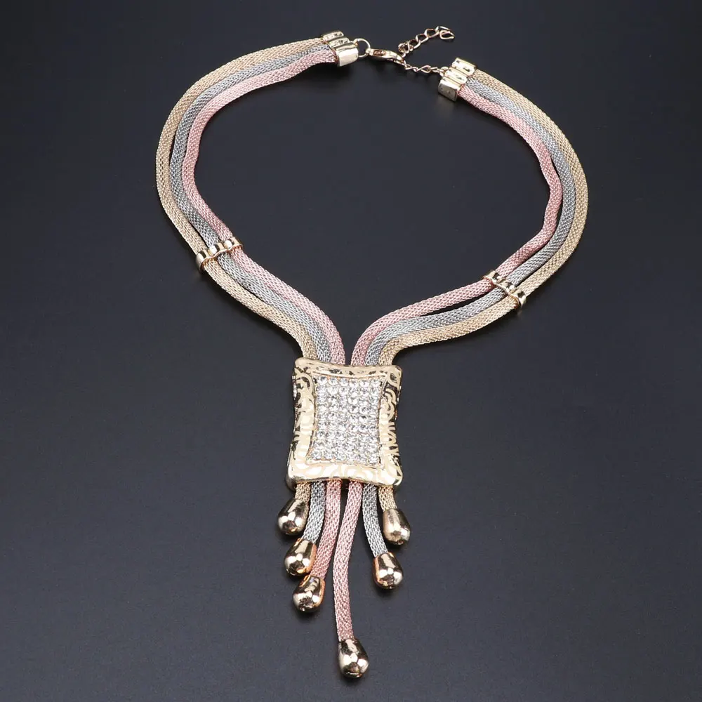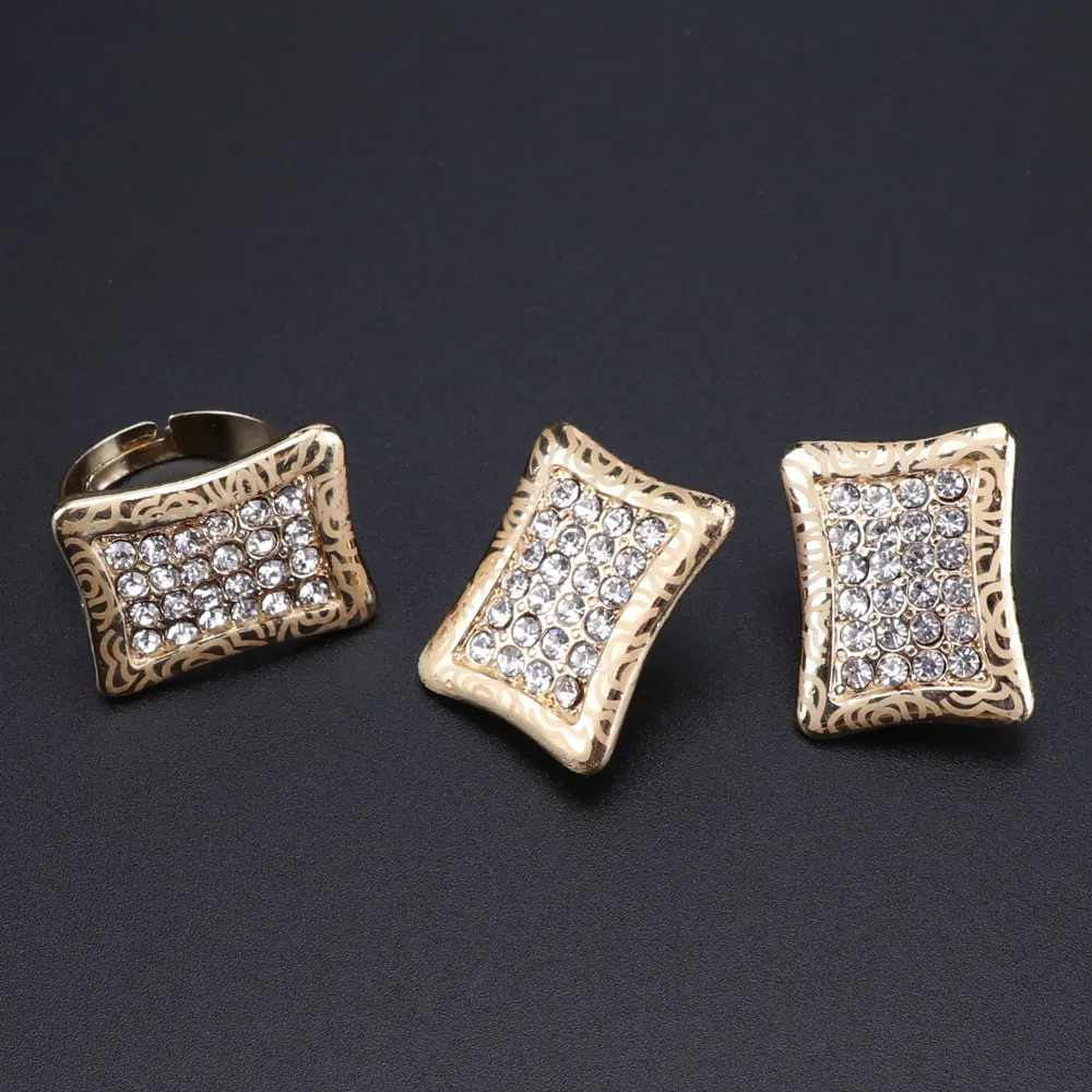 Модные Ювелирные наборы золотого цвета, металлические квадратные свадебные ожерелья в стиле панк + серьги + кольцо + браслет, Женские Ювелир...