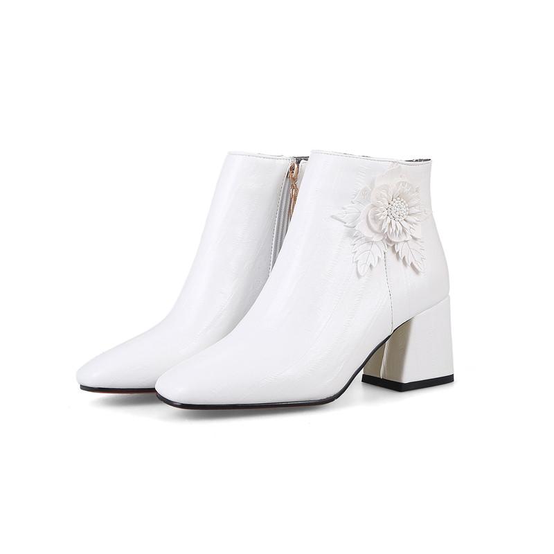 Модные ботильоны с милым цветком для женщин, модные короткие ботинки на низком каблуке, красные, белые, черные, большого размера, весенне-зимняя женская обувь 39 белый