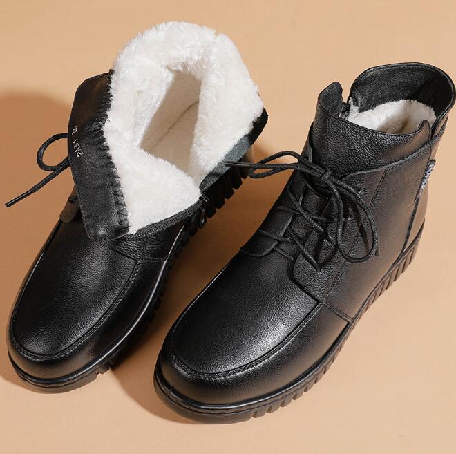 Модные ботильоны 2025 Женские из натуральной кожи Зимние шерстяные теплые Снежные ботинки Маме Плюшевые на танкетке Женская обувь Размер 35-40 40