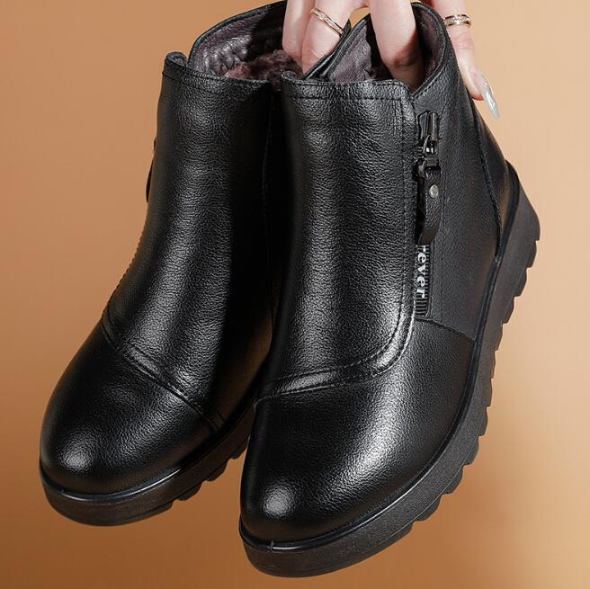 Модные ботильоны 2025 Женские из натуральной кожи Зимние шерстяные теплые Снежные ботинки Маме Плюшевые на танкетке Женская обувь Размер 35-40 40